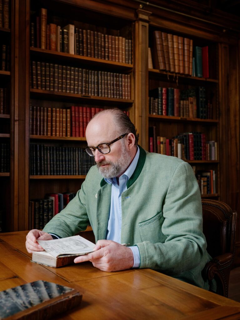 《“ 法式宴席总管》(Le maître d’hôtel français) 和《如画的糕点师》(Le pâtissier pittoresque) ——厨师安托南·卡雷姆 (Antonin Carême) 这两部亲笔签名的古籍是最初建立侯伯王酒庄图书馆的灵感来源,更奠定了馆藏的基石。这两部珍本是我最早几批收藏的一部分,它们承载着世界历史和美食文化,也展现出侯伯王酒庄前任庄主夏尔-莫里斯·德·塔列朗-佩里戈尔 (Charles-Maurice de Talleyrand-Périgord)著名的外交才能。我毫不怀疑,在那深刻塑造今日欧洲格局的会议宴席上,塔列朗所用之酒,必是侯伯王佳酿。”